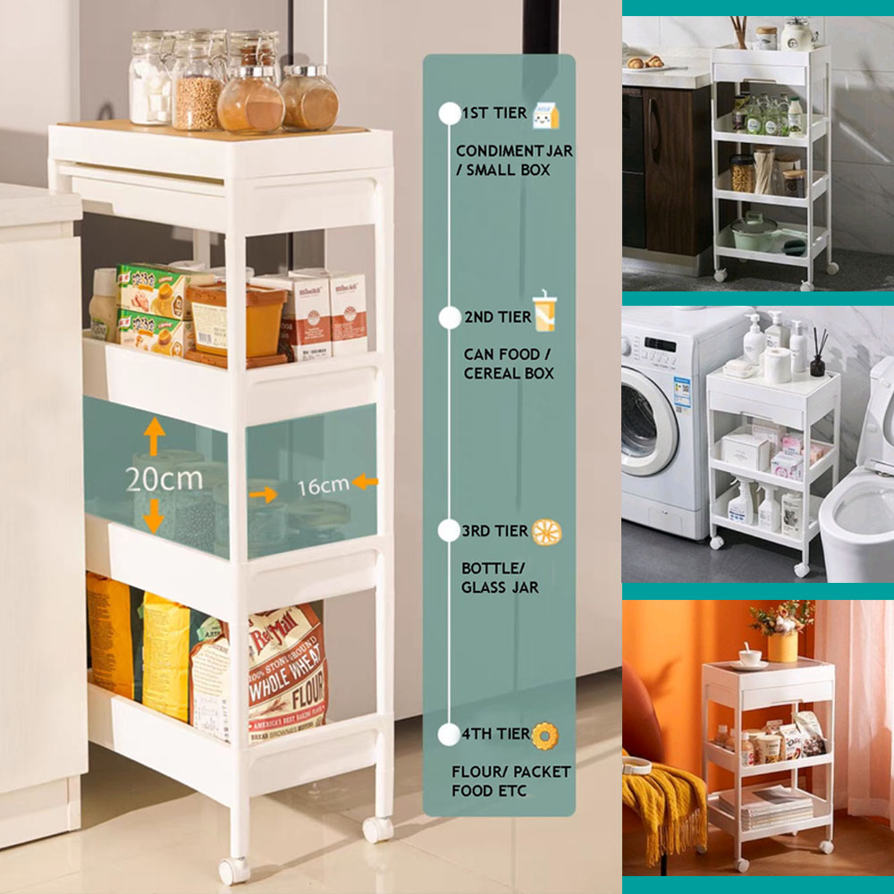 - Four (4) wheels movement is easy to relocate the trolley and effortless
