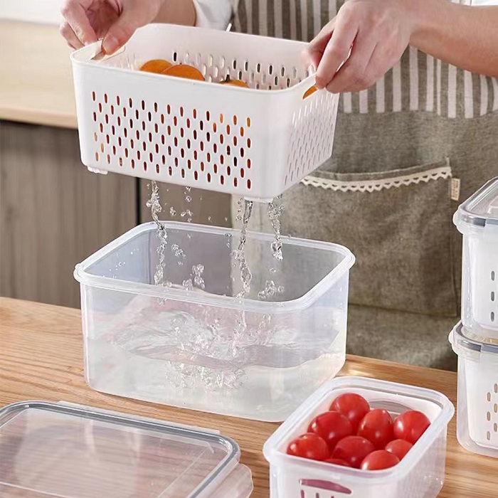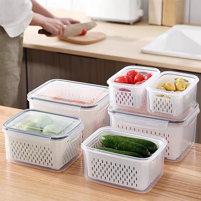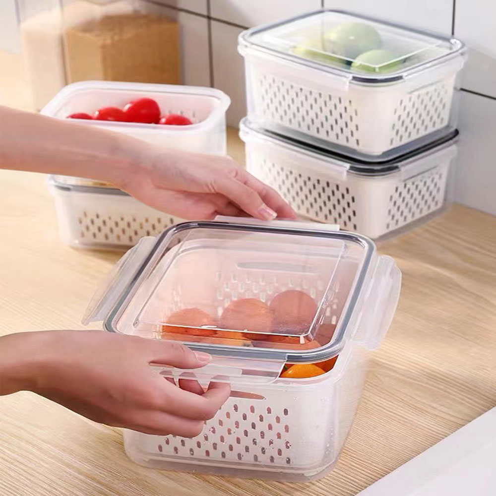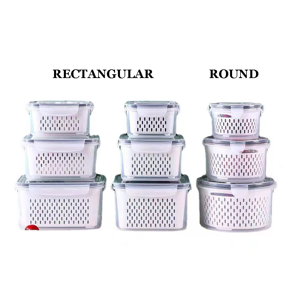 -Containers with removable drain plate and lids to lock food fresh and stay hydrated, suitable for storing fruits, vegetables, seafood, meat, tableware, etc.